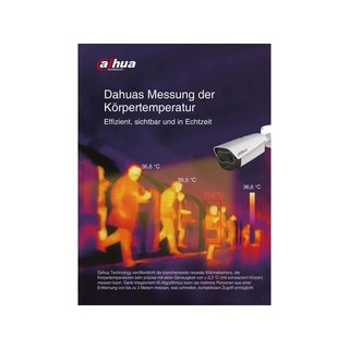 Dahuas thermische Lösung misst die Körpertemperatur von Besuchern und Mitarbeitern und kann jeden Tag einen Strom von Tausenden von Menschen prüfen. Im Vergleich zur traditionellen Art der Körpertemperaturmessung – ein Stirnthermometer – erhöht Dahuas thermische Lösung die Geschwindigkeit und Genauigkeit erheblich und hilft durch berührungslose Messung gleichzeitig, Kreuzinfektionen zu reduzieren. Mit Dahuas thermischer Lösung, können die körpertemperaturen von 3 Personen pro Sekunde gemessen werden. Sie bietet zudem eine hohe Genauigkeit von ±0,3°. Dadurch können potenzielle Krankheitsüberträger identifiziert werden. Laut Robert Koch Institut ist eine erhöhte Temperatur (Fieber) das häufigste Symptom von COVID-19 (Stand 13.03.20, aus: https://www.rki.de/…/N/Neuartiges_Coronavir…/Steckbrief.html)